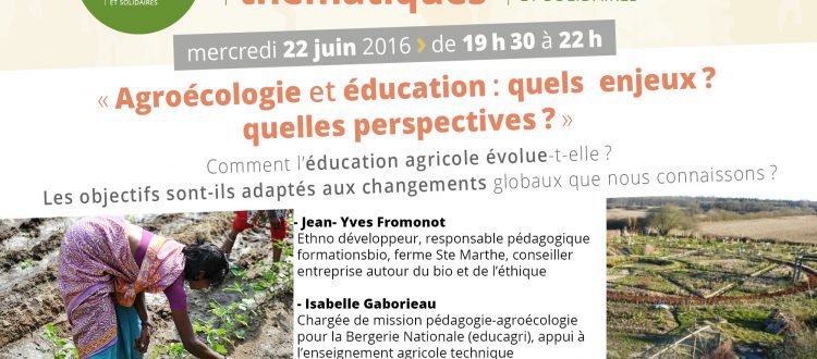 C’est avec engouement que le public a participé ce 22 Juin à notre 24 ème Apéro Thématique sur l’« Agroécologie et l’éducation : Quels enjeux ? Quelles perspectives ? ». Nous avons pu compter sur un constat général et précis à la question de l’éducation publique par Isabelle Gaborieau (Chargée de mission pédagogie-Agroécologie pour la bergerie Nationale, appui à l’enseignement agricole technique) et de l’exemple associatif de la Ferme Ste Marthe avec Jean-Yves Fromonot (Ethno développeur, responsable pédagogique de la « formationsbio », ferme st-Marthe, conseiller entreprise autour du bio et de l’éthique). Le débat fertile a apporté solutions pratiques et pistes de réflexions à un public venu y voir un peu plus clair dans les programmes éducatifs agricoles.