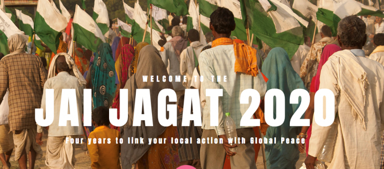L’organisation de défense des paysans sans terres indiens Ekta Parishad, connue pour ses grandes marches massives de revendications foncières (notamment la Janadesh en 2007 et la Jan Satyagraha en 2012) a lancé depuis 2014 une immense campagne s’étalant jusqu’en 2020, la Jai Jagat 2020. Signifiant la « victoire du monde », cette campagne à travers toute l’Inde puis à l’international, veut interpeller directement les Nations unies et l’ensemble des organisations internationales sur la nécessité d’un autre modèle de développement qui cesse de détruire l’environnement et de priver les petits paysans de leurs principales ressources au nom de la croissance. De Delhi à Genève, ce sera une marche de plus de 8 000 km pour tous les exclus de la mondialisation qui aura lieu entre septembre 2019 et octobre 2020.
