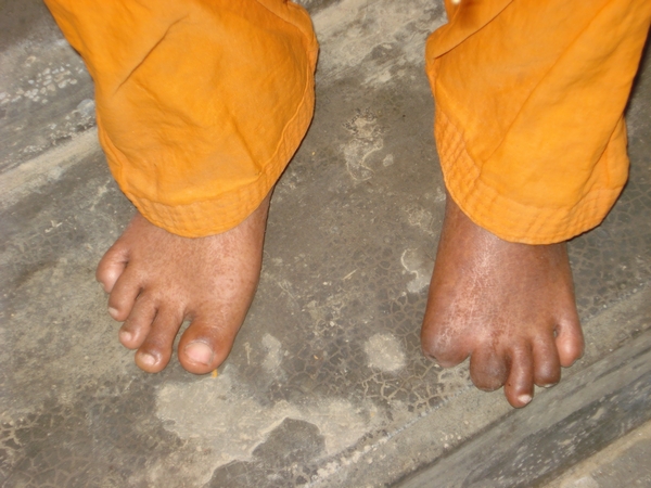 Jyotsana Khatun a été sévèrement touchée par la pollution à l’arsenic et elle a perdu plusieurs de ses doigts de pieds. Depuis qu’elle utilise le filtre à eau pour cuisiner et boire, elle se porte mieux.