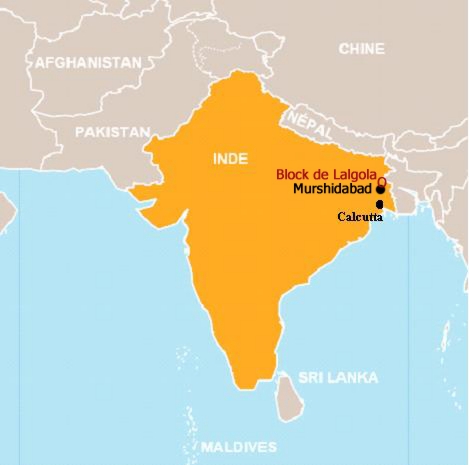 Zone du projet : Block de Lalgola, districk de Murshidabad, situé à environ 2h30 de Calcutta, à la frontière avec le Bengladesh.