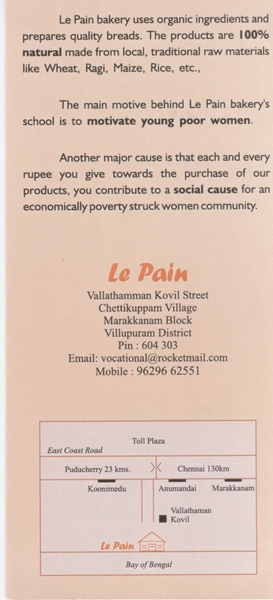 - Janvier à juillet 2010 : 38 jeunes femmes formées (12 en boulangerie, 15 en informatique et 11 en couture). Le centre d’apprentissage a aussi accueilli des jeunes femmes réfugiées du Sri Lanka en extrême difficulté (famille ou proche tué pendant la guerre). Elles sont reparties dans leur pays avec leur diplôme professionnel qui doit leur permettre de trouver rapidement un emploi.