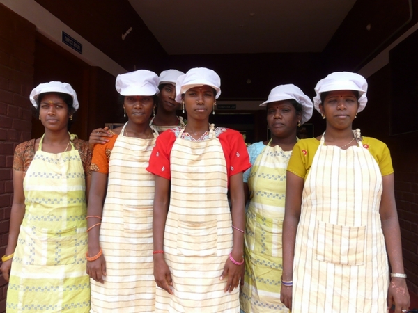 Témoignage de Rajalakshmi 32 ans (au centre) : « Une fois que les clients auront goûté les nôtres, ils ne mangeront plus ceux du commerce in- mangeables et ils reviendront en chercher chez nous ! »