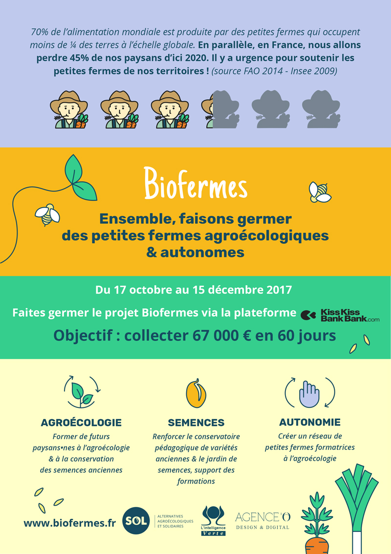 Infographie, le projet Biofermes Internationales en France, juin 2018