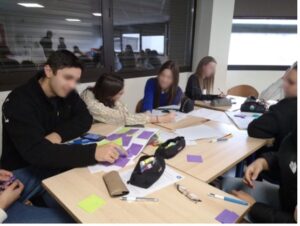 Enfin, lors de la troisième séance était une séance de restitution des connaissances apprises. Les élèves de deuxième année ont ainsi été chargés d’animer le jeu qu’ils avaient créé lors de la séance précédente auprès de la classe de première année de BTS ACSE. Pour ce faire, les cartes « Problème » ont été distribuées aux élèves de deuxième année, et les cartes « Solutions » aux élèves de première année. Chacun à leur tour, les élèves de deuxième année devaient énoncer leur carte Problème, en expliquant les enjeux du problème en question. Ensuite, les élèves de première année devaient se manifester s’ils pensaient avoir une carte Solution correspondante. S’ensuivait alors une discussion entre les élèves pour discuter des solutions possibles, les enseignants et l’animatrice pouvant apporter des compléments et participer au débat.