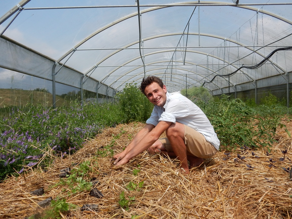 Je suis aidé par une personne en service civique, qui travaille à peu moins de la moitié de son temps dessus, pour le moment. Et puis parfois nous recueillons l’aide de Renaud, un jeune jardinier en apprentissage à la ferme.